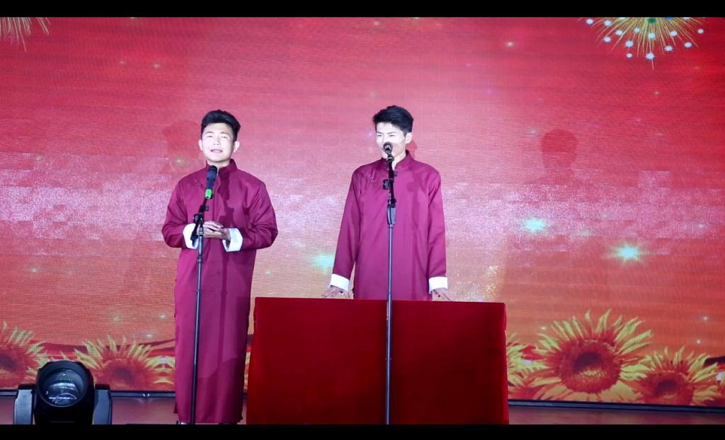 晚会上,老师和同学们均有出色的表演,像是一场师生的才艺大比拼,节目内容丰富新颖,场内气氛十分热烈。