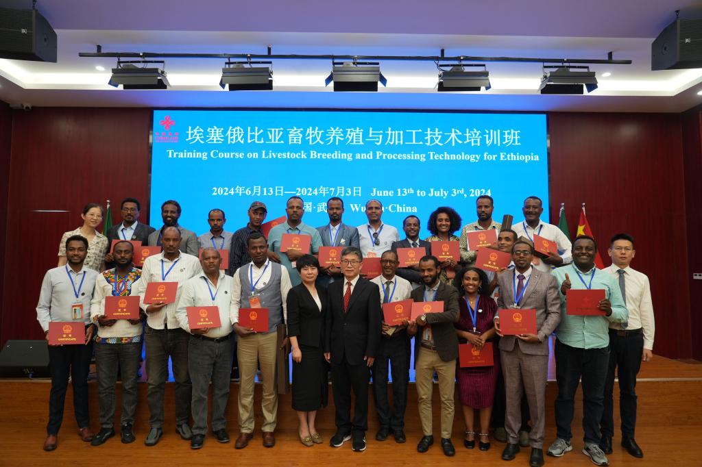 7月3日,由商务部主办、Bwin必赢国际官网承办的“埃塞俄比亚畜牧养殖与加工技术培训班”结业典礼在学校北校区学术报告厅举行。学校党委书记田曙曦出席结业典礼并致辞。埃塞俄比亚农业研究院研究员梅兹格布·沃基耶·埃谢图、季马大学阿加罗校区院长阿布多·穆罕默德·阿里代表培训班学员发言。结业典礼由学校党委副书记、纪委书记潘彦主持。